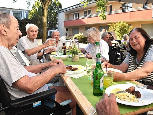 Unsere Bewohner*innen genossen in angenehmer Atmosphäre einen Grillabend im Ostflügel. Unsere Betreuungskräfte kreierten in Zusammenarbeit mit den Bewohnern*innen, verschiedene Salate, Würstchen und Cevapcici.