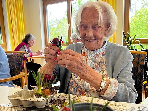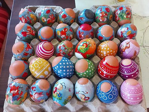 Zuvor wurde in allen Bereichen fleißig gebastelt und gemalt. Unsere Bewohner*innen haben mit viel Freude Ostergrstecke gestaltet und bunte Ostereier verziert. Die kreativen Ergebnisse können sich wirklich sehen lassen! Ein herzliches Dankeschön an unser wunderbares Betreuungsteam für die tollen Ideen und die liebevolle Umsetzung.