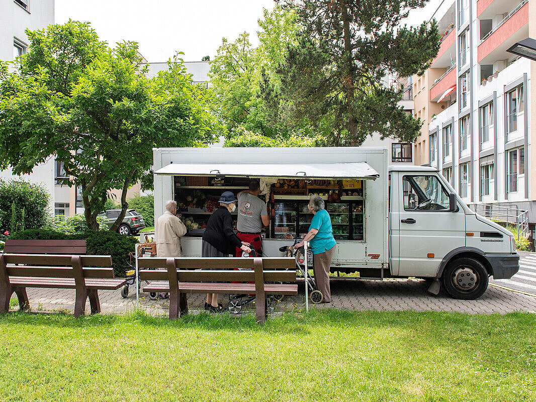 Der Verkaufsbus von Bauer Lenz aus Karben hält regelmäßig jeden zweiten Donnerstag ab ca. 12.30 Uhr direkt auf unserem Gelände vor den Mietwohnungen. Regionale Wurst-, Fleischwaren, Obst, Gemüse und weitere Leckereien für den täglichen Bedarf sind dort zu erhalten. Das Angebot wird von den Mietern rege genutzt und erspart lange Einkaufswege.